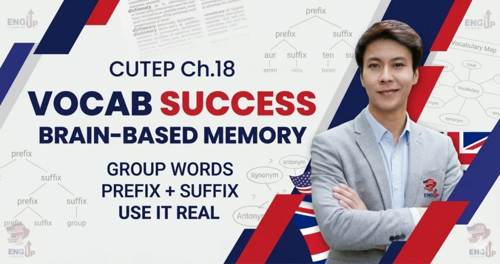 Bonus Chapter 2 Mini Chapter 18 Vocabulary อีกครึ่งของความสำเร็จ เทคนิคการท่องศัพท์ จากการเข้าใจกลไกการทำงานของสมอง Structure ต้องดีคือครึ่งหนึ่ง (ใครยังไม่มั่นใจ อย่าลืมย้อนกลับไปอ่าน 8 Mini Chapters แรกของ CU-TEP Writing กันนะครับ) คำศัพท์ต้องพอประมาณคืออีกครึ่งหนึ่ง และมันคือของสะสม ศัพท์มากได้เปรียบ แม้มันจะไม่ใช่ทุกสิ่งทุกอย่างสำหรับข้อสอบมีระดับ บทความนี้เราลองมาดูวิธีเพิ่มของสะสมของเรากันดีกว่า เริ่มก่อนได้เปรียบนะครับ ถ้าเรายังพอมีเวลาในการเตรียมตัวท่องศัพท์ หรือ การสร้างพื้นฐานคำศัพท์เลยเนี่ย อาจารย์โจแนะนำว่า 1. จัดกลุ่มมันก่อนครับ คือพยายามจัดกลุ่ม synonym และ antonym สำหรับคำศัพท์ที่ออกบ่อยๆ (CU-TEP Vocab Notebook) 2. ลองเอาพวก prefix มาใส่ เพื่อเปลี่ยนความหมายของมัน และลองคิดเล่นๆดู ว่าคำๆนี้มันมีรูป Part […]