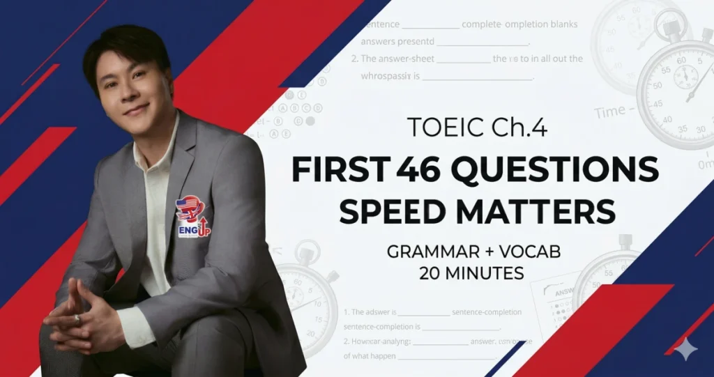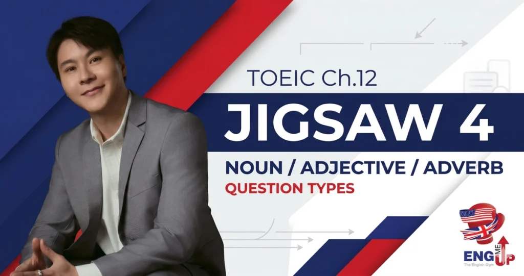 Chapter 13 Jigsaw 4 ชิ้นหลัก กับรูปแบบโจทย์ TOEIC ที่ห้ามผิด(Part 4: ตายน้ำตื้น) หลังจากประเมินความเหมาะสมระหว่างพระเอกนางเอก และลำดับความสำคัญของตัวประกอบ ได้อย่างแม่นยำในบทความที่ผ่านๆ มา แต่ไม่วายตายน้ำตื้น จากความคุ้นเคย ที่ติดตัวมาตั้งแต่เด็ก จำไว้นะครับ อะไรที่จำง่ายๆ หรือคิดว่าตายตัว ยิ่งหอมหวานน่าเอามาออกข้อสอบเสียเหลือเกิน หลังจากทำโจทย์ Part of Speech ที่เหลือ ด้วย Jigsaw ชิ้นที่ 2-4 ไปอีก 15 ข้อ เป็นไงกันบ้างเอ่ย ใครได้เต็ม อาจารย์ปรบมือให้ และนั่นคือความสำเร็จในเบื้องต้นครับ ส่วนใครมีผิดพลาด โดนหลอก ไม่ต้องตกใจ ไม่ต้องเสียใจ ไม่ต้องตีโพยตีพาย คืออาจารย์อยากให้พลาดบ้าง พลาดในส่วนที่หลายๆ คนพลาด ที่เราเรียกว่าตายน้ำตื้น เราจะได้มีประสบการณ์เจ็บ เพื่อหัวใจจะได้แข็งแรงขึ้น ง่อว!! จุดตายน้ำตื่นจุดที่ 1 […]
